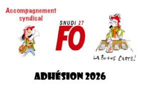- Adhérer au SNUDI-FO 27 en 2026Comment adhérer au SNUDI-FO 27, 1 er syndicat du 1 er degré de l’Eure, en 2026 ? Pour adhérer au SNUDI-FO 27 en 2026, plusieurs solutions sont possibles : 1) Imprimer le bulletin d’adhésion 2026 : CLIQUEZ ICI Vous pourrez ensuite le scanner et nous l’envoyer par mail à l’adresse snudifo27@gmail.com ou […]